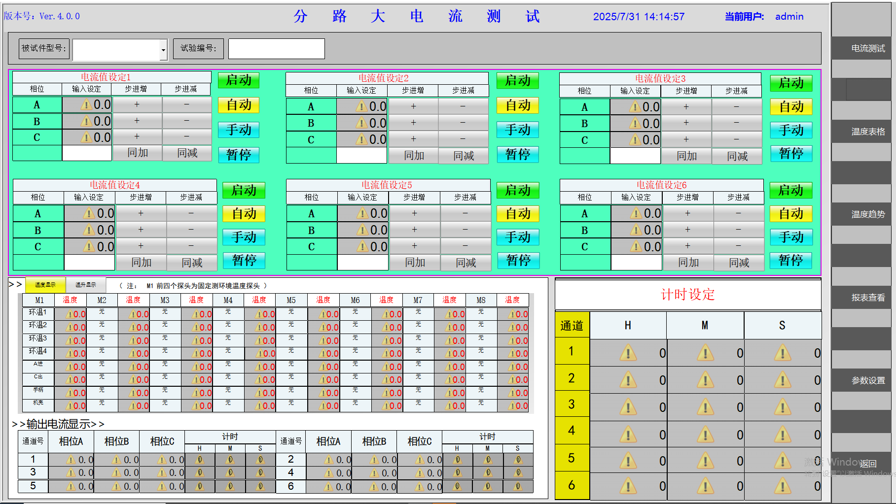6)人性化界面,軟件界面友好,全中文操作界面,控制軟件具備數(shù)據(jù)記錄、并可將電流、溫度波形存儲,數(shù)據(jù)管理、報表、打印等多種實用功能;參數(shù)設(shè)定全部在軟件中完成。更為直觀地分析電流與溫度關(guān)系值。使所有數(shù)據(jù)和測試分析結(jié)果一目了然。試驗過程中,自動跟蹤目標電流,自動穩(wěn)定輸出電流,自動調(diào)節(jié)三相電流;試驗完成后,自動回到零位;
